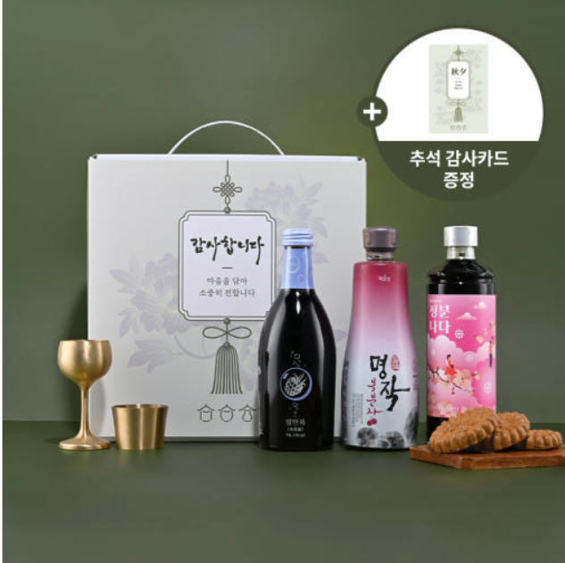 - 와인, 위스키, 전통주 선물 세트는 특별한 분위기를 낼 수 있어 거래처 선물로 인기가 많습니다.